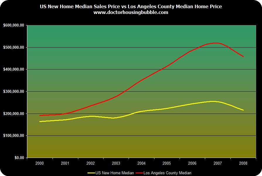 If you look at the Median Price line (in red), it tends to follow the general trend of sales activity. Back in March, our friend over at Dr. Housing Bubble had posted a similar looking chart but it was tracking the median price for LA County.